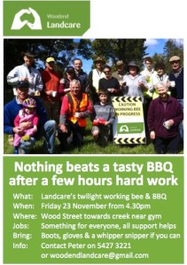 The team at Woodend Landcare invite you to join them for a twilight working bee and a tasty BBQ to round off the year. There are plenty of jobs for everyone.