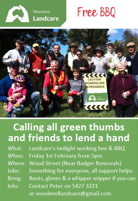 To register your interest, and to help with catering numbers, please contact Peter on 5427 3221 or email woodendlandcare@gmail.com if you can lend a hand on 1st February from 5pm.
