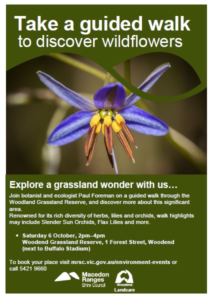 Explore the wonders of wildflowers in full bloom with a guided walk through the Woodend Grassland Reserve on Saturday 6 October from 2pm to 4pm.