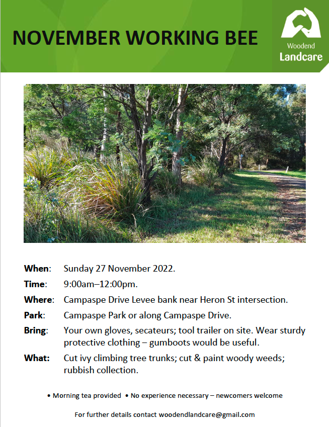 Share this: Click to share on Facebook (Opens in new window) Facebook Click to share on X (Opens in new window) X Like Loading... Related Woodend Landcare Working Bee – 27 November 2022 November 24, 2022November 24, 2022 / Woodend Landcare / Leave a comment