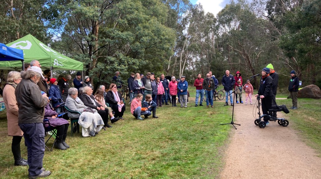 On 18 June 2023 we were filled with excitement, pride and nostalgia as we officially opened the Jo Clancy Bridge. After many years of work behind the scenes, it was a relief that the weather was kind and 60+ people gathered for the event.