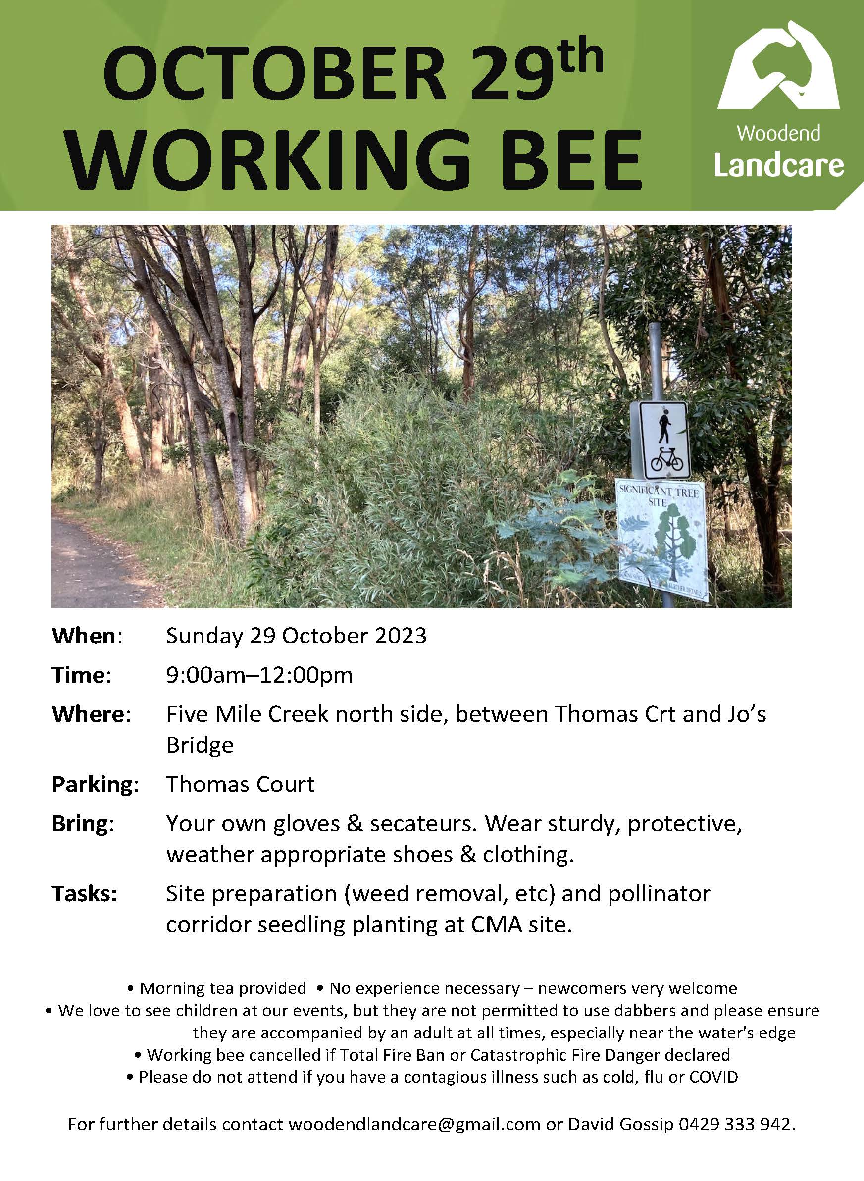 Join us to plant some more Pollinator Corridor seedlings and undertake site preparation and weeding along Five Mile Creek near Thomas Court, 9am-12pm Sunday 29 Oct. All welcome, including new comers and those with no gardening or landcare experience. As usual we’ll provide a tasty morning tea and social chit chat to break up the morning.