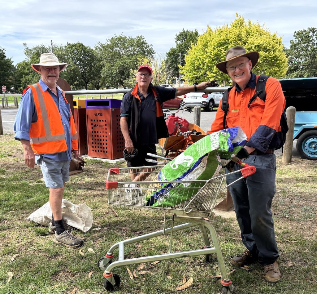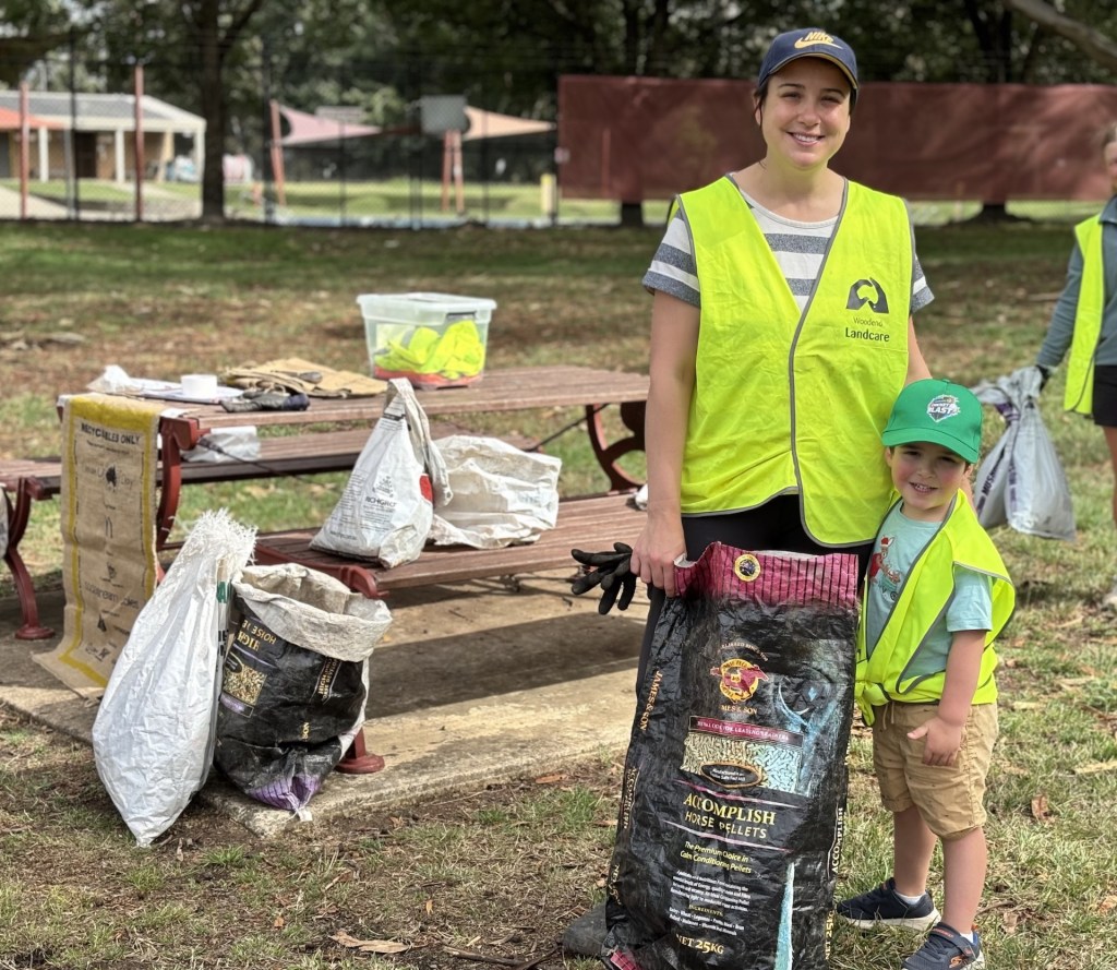 On Sunday 1 March, 15 people met at the Woodend Information Centre. They scoured up and down Five Mile Creek between Buffalo Stadium and Campaspe Park. Their mission was collecting rubbish. Still, some of us couldn’t resist the temptation to pick a weed or two along the way!