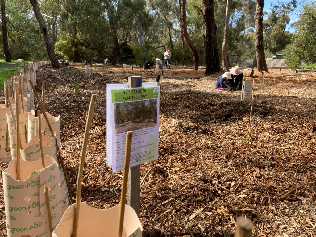 This planting will complement that already undertaken by the Scouts near the Scout Billabong. The project will continue until all the mulched areas are progressively filled with plants over the next few years. It is a important action in the Woodend Five Mile Creek Master Plan, developed with Council in 2022 (see here).