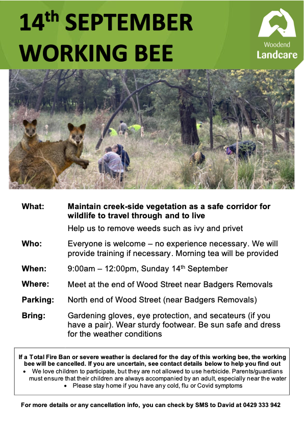 Join us at Heron St end of Campaspe Park this weekend for our last Sunday working bee in 2025. Come along from 9am to remove some weeds, before we hang up the tools early for an extended festive morning tea. See flyer for details.